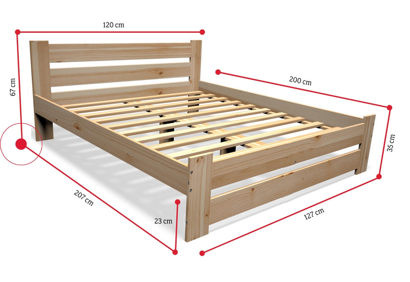 Posteľ z masívu STUDY je vyrobená z borovicového dreva opracovaného do hladka. Materiál už ďalej nie je lakovaný. Rozmer 120x200 cm ponúka dve 'piate nohy', ktoré prispejú k stabilite a pevnosti celkovej konštrukcie postele. Súčasťou je tiež latkový rošt, ktorý vám dodáme ZDARMA. Maximálny komfort vám poskytne vami vybraný matrac.