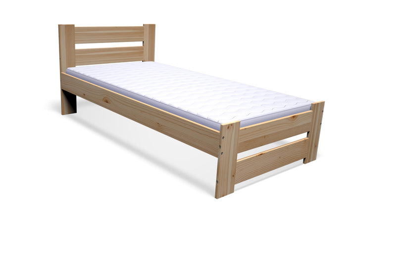 Posteľ z masívu STUDY je vyrobená z borovicového dreva opracovaného do hladka. Materiál už ďalej nie je lakovaný. Súčasťou je tiež latkový rošt, ktorý Vám dodáme ZDARMA. Maximálny komfort zariadi vami vybraný matrac.
