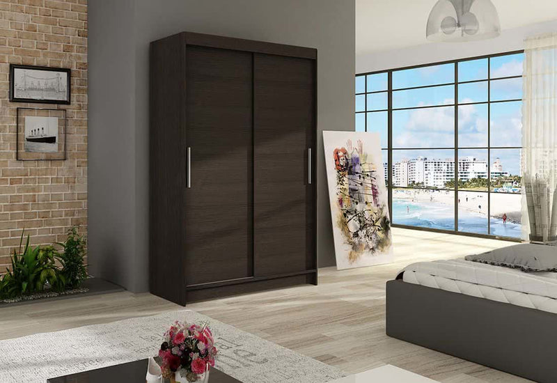 Posuvná šatníková skriňa FLORIA I. Je vyrobená z kvalitného materiálu. Za posuvnými dverami sa ukrýva veľké množstvo úložného priestoru. Poskytne vám priestranné police a šatníkovú tyč. Pre ľahšiu manipuláciu sú dvere vybavené dlhou rukoväťou. Zostáva vám už len zvoliť farbu tak aby skriňa zapadla do vášho interiéru.