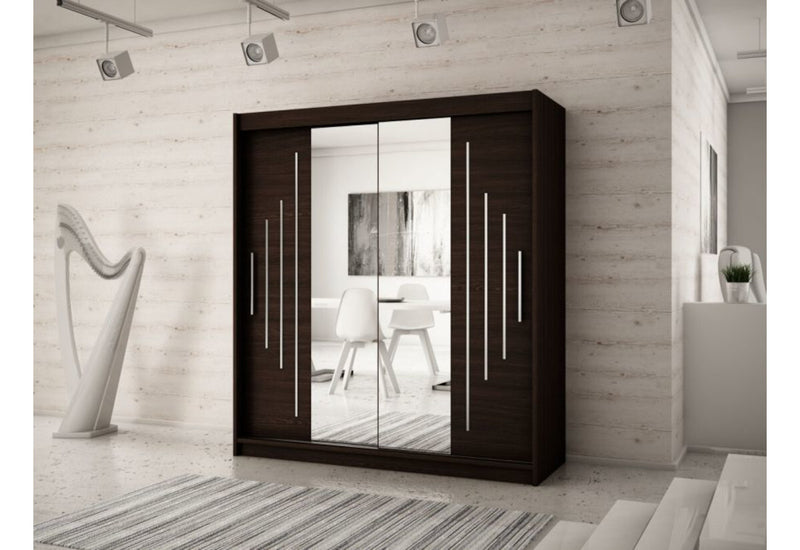 Posuvná skriňa BLASICO 1. Ponúka dostatok úložného priestoru v podobe šatníkových tyčí a niekoľkých políc. Skrinka je vyrobená z vysokokvalitného materiálu s hrúbkou 1,6 cm. Môžete si vybrať z rôznych veľkostí a niekoľkých farieb.