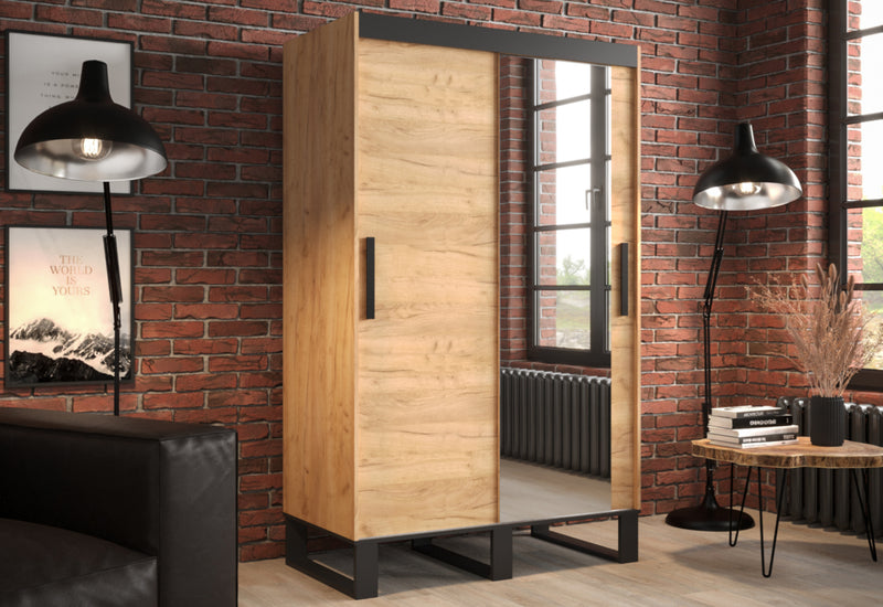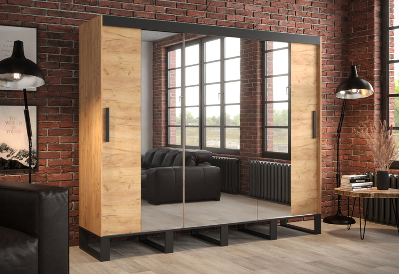 Posuvná skriňa LIFT T2. Konštrukcia je vyrobená z kvalitného materiálu s hrúbkou 1,6 cm. Šatníková skriňa ponúka dostatok úložného priestoru, je vybavená policami a šatníkovou tyčou. Dvere šatníka sú doplnené zrkadlom. Počet políc sa líši podľa šírky skrine.
