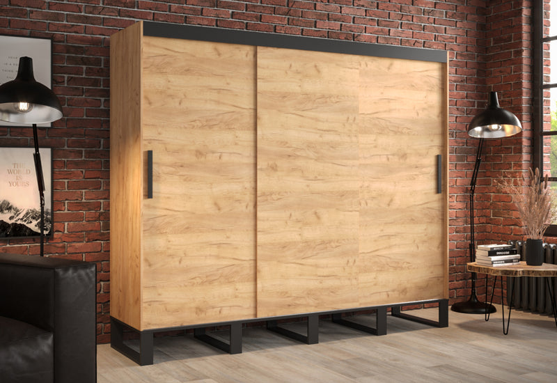 Posuvná skriňa LIFT. Konštrukcia je vyrobená z kvalitného materiálu s hrúbkou 1,6 cm. Šatníková skriňa ponúka dostatok úložného priestoru, je vybavená policami a šatníkovou tyčou. Počet políc sa líši podľa šírky skrine.