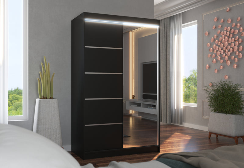 Posuvná skriňa so zrkadlom ANCORA, 120x200x58, čierna -  - 0