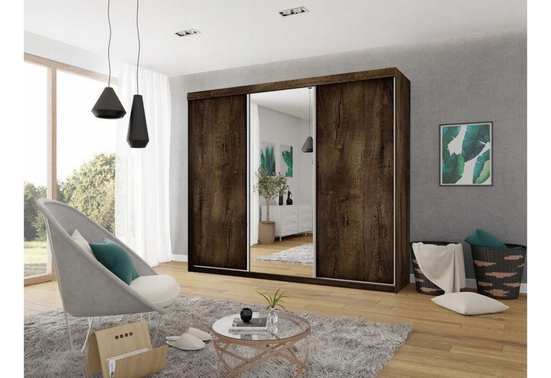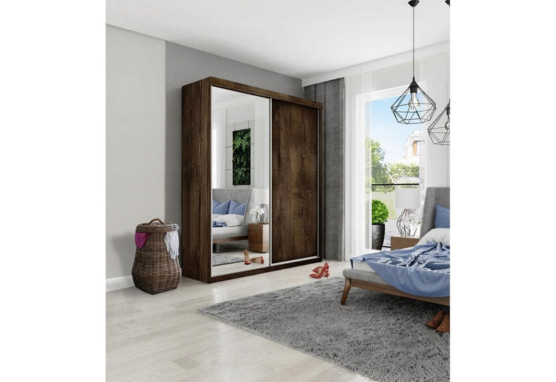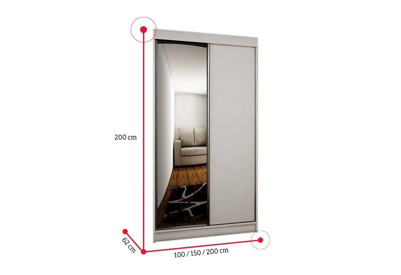 Posuvná skriňa TALIA 23 je vyrobená z vysokokvalitného materiálu s hrúbkou 1,6 cm. Skriňa obsahuje posuvné dvere so zrkadlom. Vnútorný priestor skrine pozostáva zo šatníkovej tyče a políc. Môžete si vybrať zo štyroch možností šírky. Je k dispozícii v troch farbách.