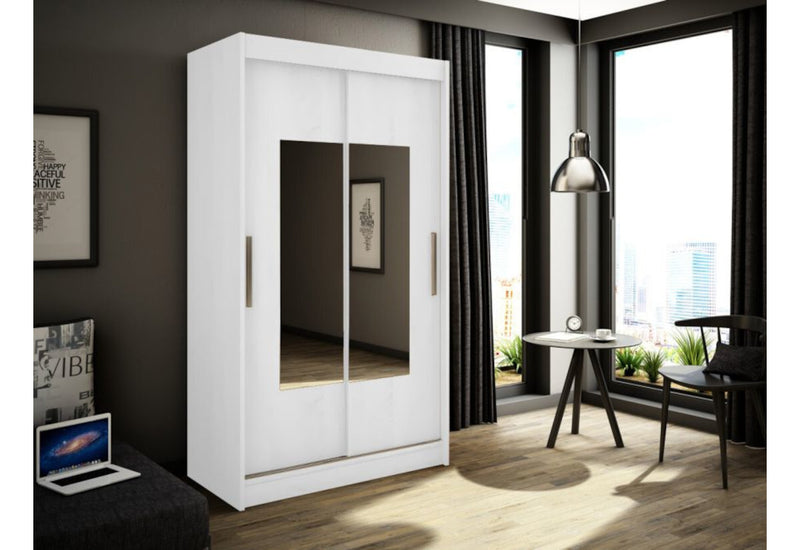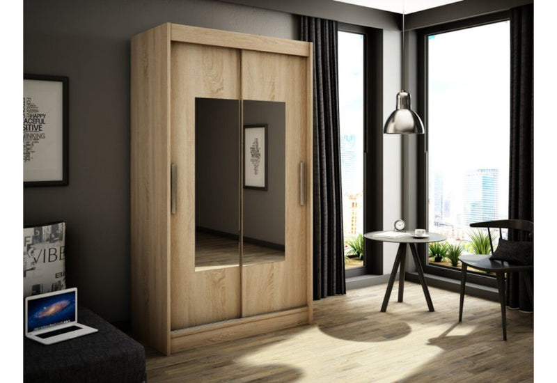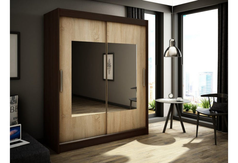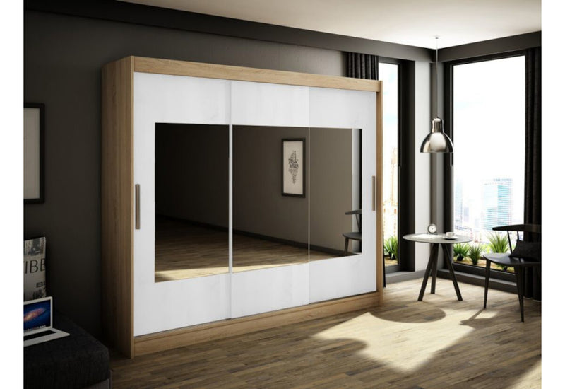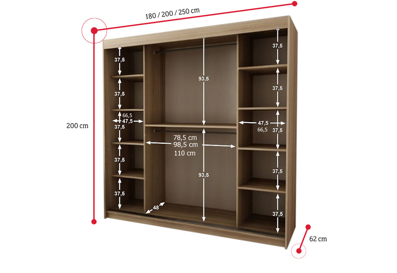 Posuvná skriňa TURINO. Poskytne dostatok úložného priestoru v podobe šatníkových tyčí a niekoľkých políc. Skriňa je vyrobená z kvalitného materiálu 1,6 cm. Pojazdy zaisťujú presný a hladký chod dvierok. Možnosť výberu rôznych veľkostí a niekoľkých farieb.