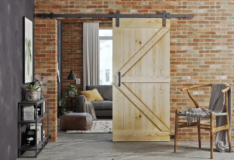 Posuvné dvere BARN. Sú vyrobené z pevného borovicového masívu, ktoré vám zaručí dlhú živostnosť. K ľahkému otváraniu slúžia čierne obojstranné úchytky, pri ktorých výrobe bola použitá kvalitná oceľ. Systém pojazdu je pochopiteľne súčasťou dverí. Vybrať si môžete z troch šírok.
