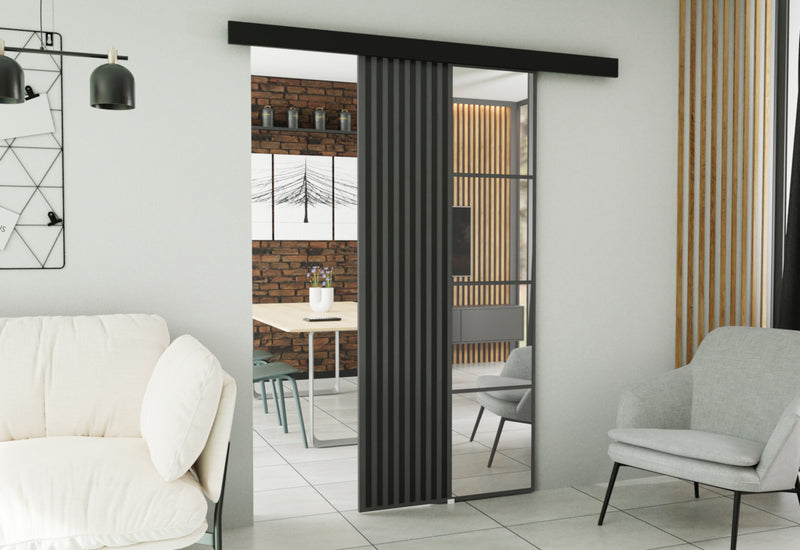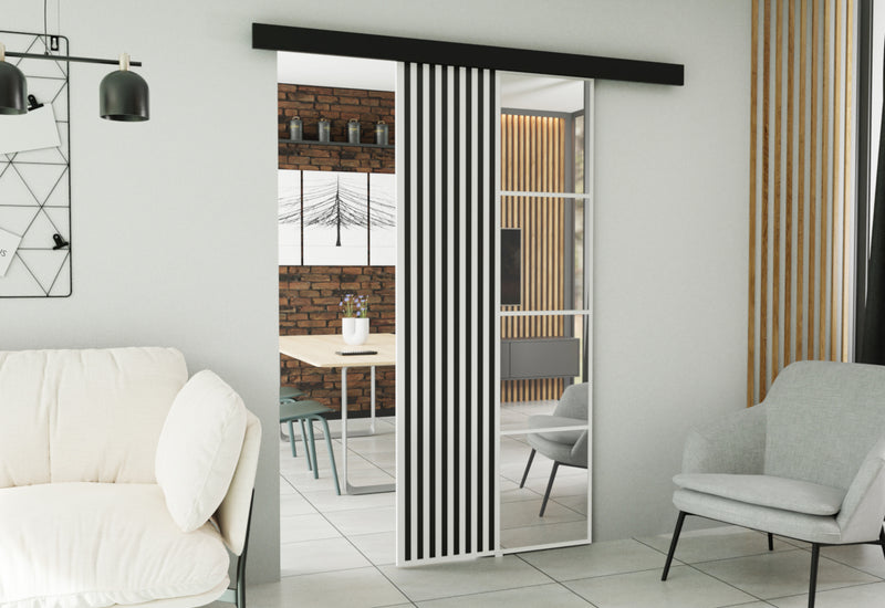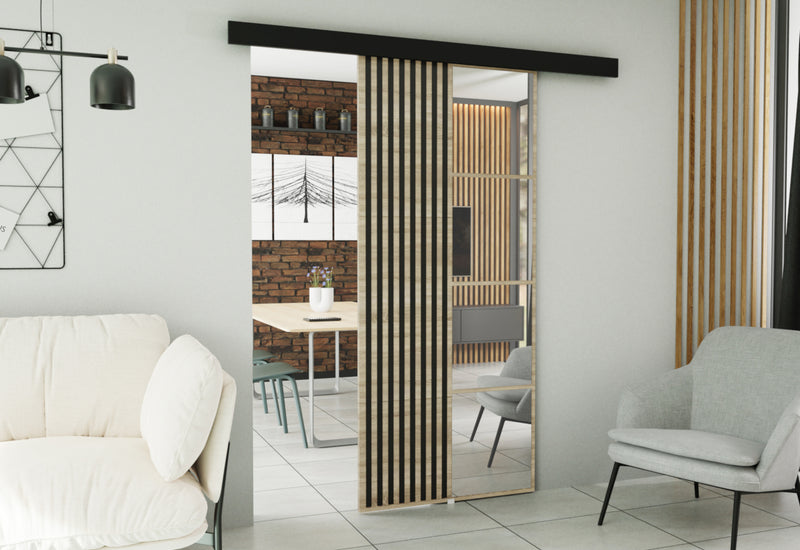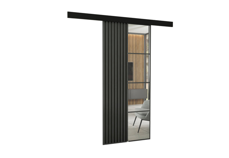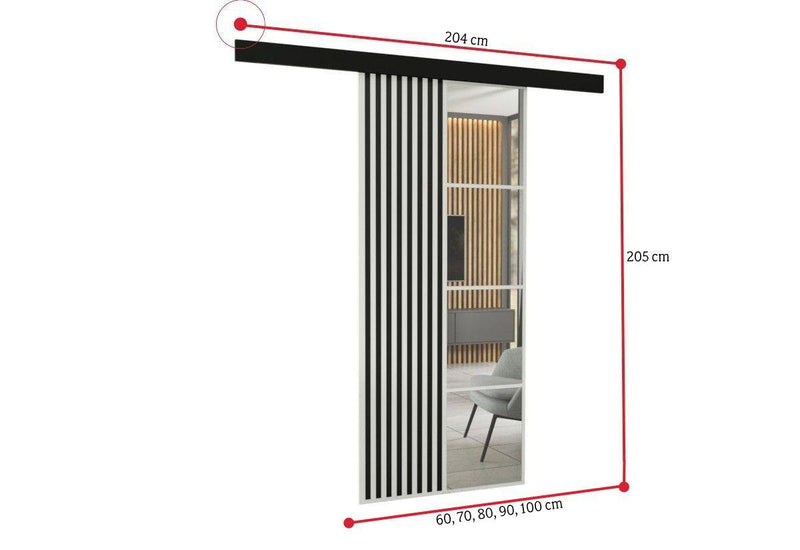 Posuvné dvere JONIS. Posuvné dvere sú vyrobené z kvalitného materiálu o hrúbke 16 mm. Materiál je opatrený ABS hranou, ktorá chánia pred poškodením. Hliníkový pojazdový systém zakrýva krycia lišta, ktorá je súčasťou balenia. Môžete ich využiť ako klasický vchod do ďalšej miestnosti, alebo do špeciálne vytvorenej šatne. Súčasťou dverí je zrkadlo. Možnosť voľby z viacerých dekorov a rozmerov.