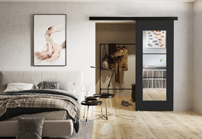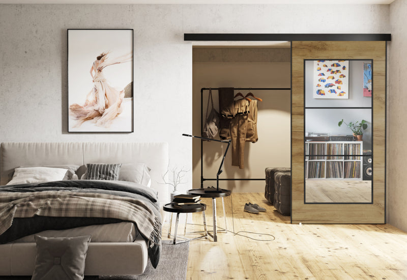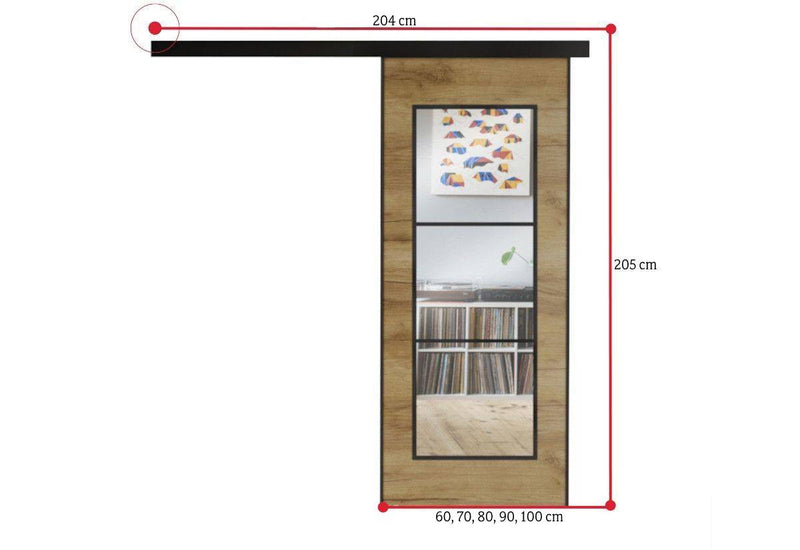 Posuvné dvere MELI. Posuvné dvere sú vyrobené z kvalitného materiálu o hrúbke 16 mm. Materiál je opatrený ABS hranou, ktorá cháňa pred poškodením.Hliníkový pojazdový systém zakrýva krycia lišta, ktorá je súčasťou balenia. Môžete ich využiť ako klasický vchod do ďalšej miestnosti, alebo do špeciálne vytvorenej šatne. Súčasťou dverí je zrkadlo. Možnosť voľby z viacerých dekorov a rozmerov.