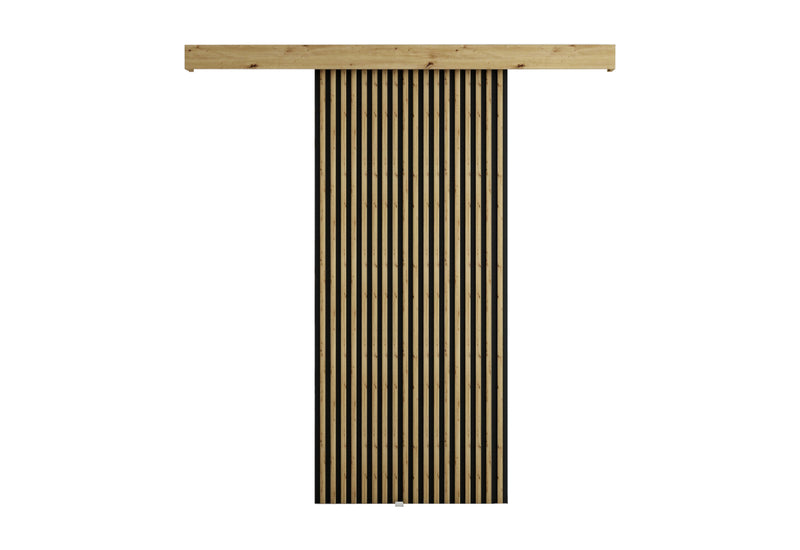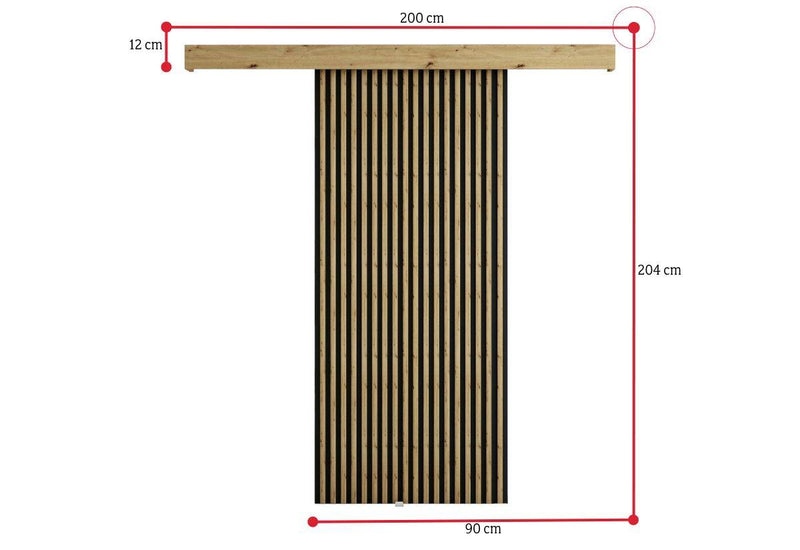 Posuvné dvere RODEN. Môžete ich využiť ako klasický vchod do ďalšej miestnosti, šatne alebo ako doplnok do predsiene. Sú vyrobené z materiálu hrúbky 1,6 cm s ABS hranou. Dvere sú bezúchytové a ľahké otváranie zaistia lamelové prvky. Samolepiace ozdobné prúžky v čiernej farbe obdržíte spoločne s dverami. Vďaka modernému dizajnu je ich možné zladiť so zvyškom interiéru.
