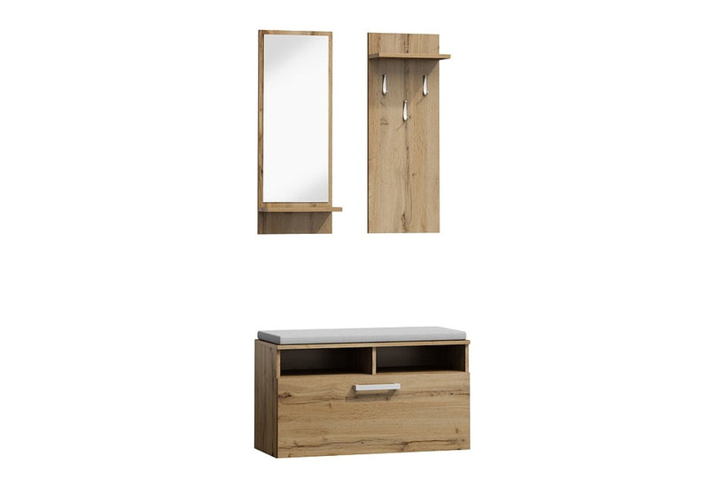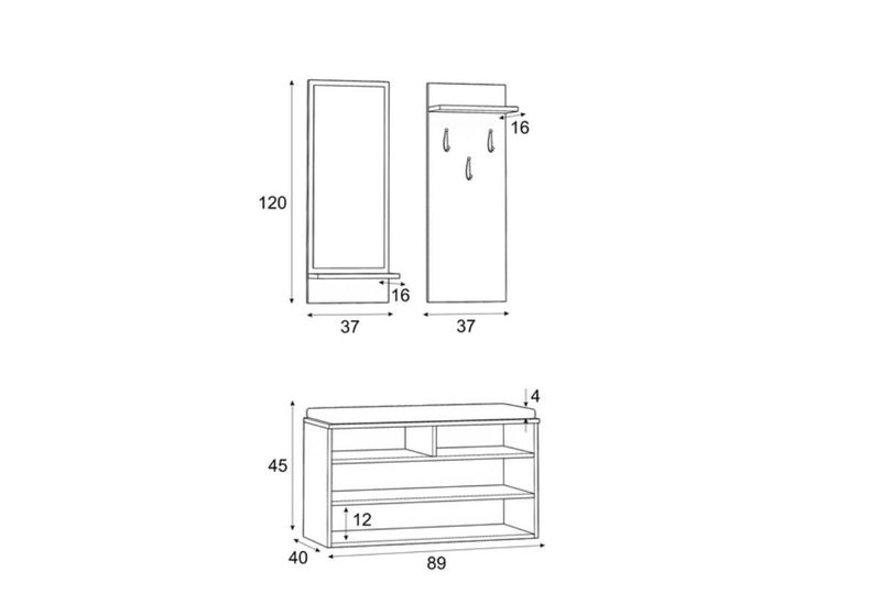 Predsieňová zostava CEED P-003. Vyrobená je z kvalitného lamina. Skladá sa z troch častí. Prvý z nich je botník s otvorenými policami a polstrovanou sedacou plochou. Druhá, nástenná časť, disponuje zrkadlom a poličkou. Súčasťou tretej časti sú police a háčiky pre zavesenie. Vyberať možno z niekoľkých farebných variantov.