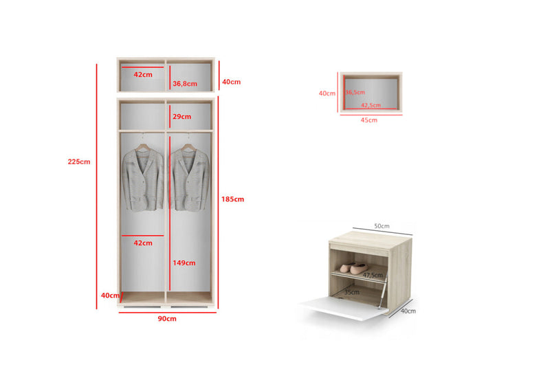 - skriňa, vešiak, botník, zrkadlo, závesná skrinka