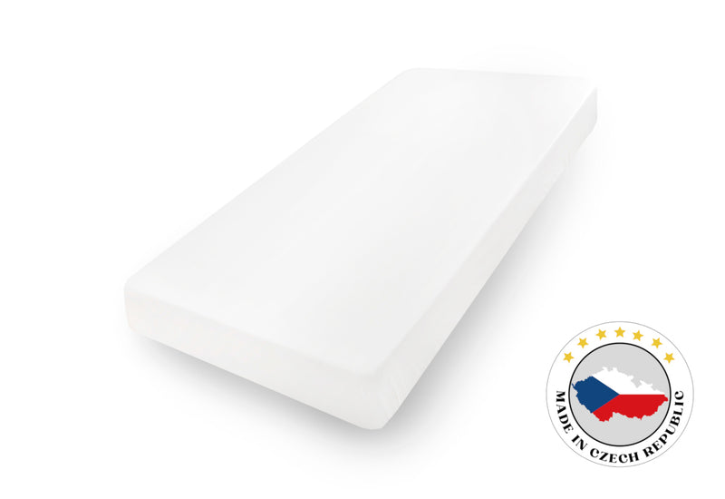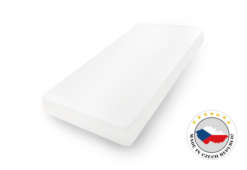 Prestieradlo JERSEY. Je vyrobené zo 100% bavlny. Guma je všitá v tunelíku a presah od hrany vybraného rozmeru ku koncu výrobku je 25 cm. Prestieradlá sa tak lepšie zakladajú pod vysoké matrace. Priesteradlo Jersey je vyrobené zo 100% bavlny. Pružnosť zaisťuje špeciálna úprava bavlnenej priadze. Odporúčame prať na 60 °C.