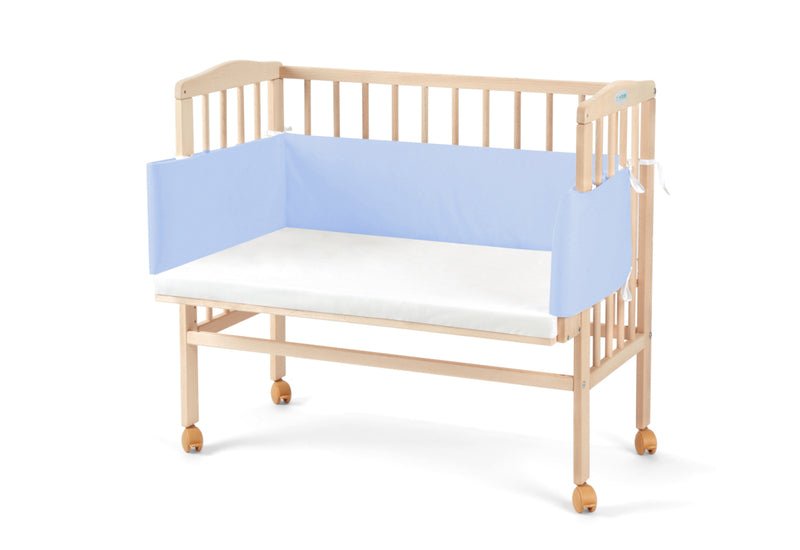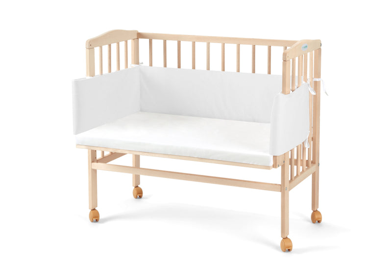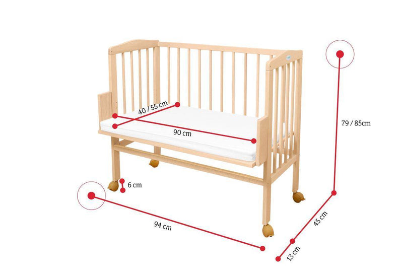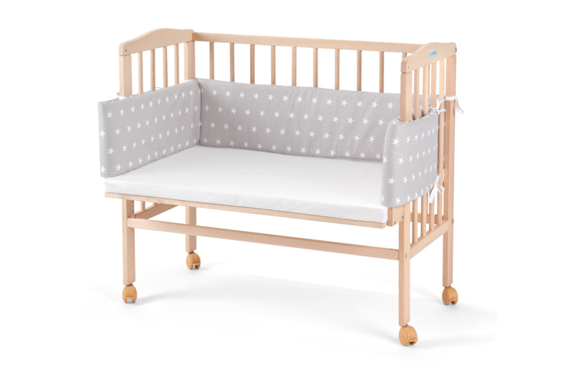 Prístavná postieľka 2 v 1 s matracom a mantinelom MANULIA. Základ tvorí konštrukcia z bukového dreva pre stabilitu a pevnosť. Ošetrené ekologickým lakom na vodnej báze. Prístavná postieľka má veľmi praktické využitie, ktoré si zaručene obľúbite. Umožňuje úzky kontakt s dieťaťom. Súčasťou je dvojdielny polyuretánový matrac, ktorý sa zmestí do konfigurácie prístavnej postieľky a moderný mantinel, vďaka ktorému bude miesto pre bábätko veľmi útulné a chránené pred nárazmi. Nastaviteľná výška roštu v piatich úrovniach. Bezpečnosť je dôležitá, postará sa o ňu zábrana a popruh, ktorým pripevníte postieľku k posteli rodičov. Dĺžka popruhu je 5 m. Možnosť použitia prístavnej postieľky samostatne stojacej alebo na pogumovaných kolieskach. Výber z viacerých dekorov mantinelu.
