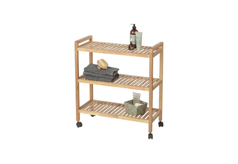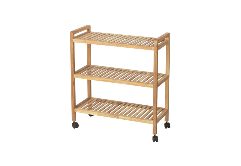 Regál FRANCIO PLUS 3. Upúta vás škandinávskym štýlom a rovnými líniami. Vyrobený je z masívneho orechového dreva. Povrch je ošetrený prírodným olejom na drevo. Zachovaná je štruktúra dreva. Jednoduchý dizajn a praktické využitie. Súčasťou sú tri otvorené police s vetracími otvormi. Výhodou je jeho ľahké mobilné presunutie pomocou štyroch koliesok. Vhodný do kúpeľne, predsiene alebo obývacej izby. Odporúčame kombinovať s ďalšími produktmi z radu FRANCIO.