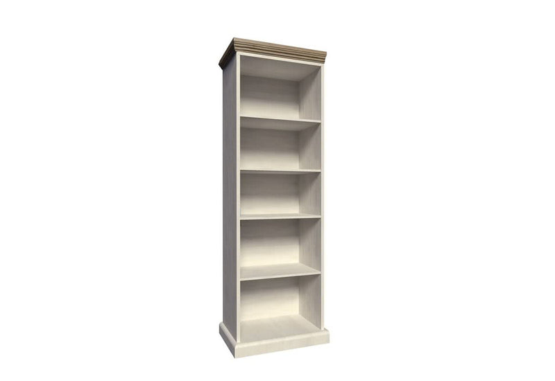 Regál KNIGHT RW. Ponúka veľké množstvo úložného priestoru. Pevná konštrukcia je vyrobená z vysoko kvalitného materiálu hrúbky 1,6 cm, ktorého výhodou je dlhá životnosť. Regál je vybavený štyrmi policami a ozdobnou vrchný lištou. Ponúkame ho v dekore bielej borovice v kombinácii s odtieňom duba.