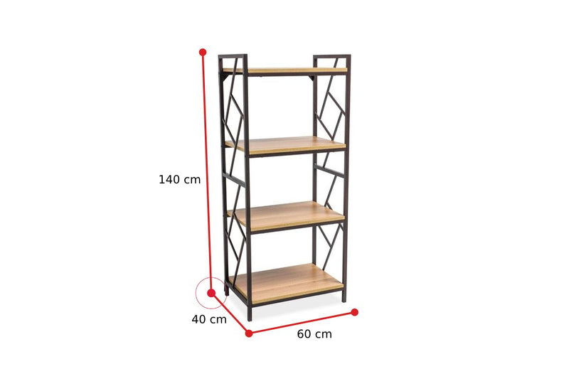 Regál LABOT R4. Je vyrobený z kvalitného materiálu v kombinácii s kovom. Regál tvorí celkom 4 otvorené police, ktoré sú spojené kovovou konštrukciou s výstužou v zadnej časti regálu. Regál v industriálnom štýle nájde svoje miesto v kuchyni i predsieni.