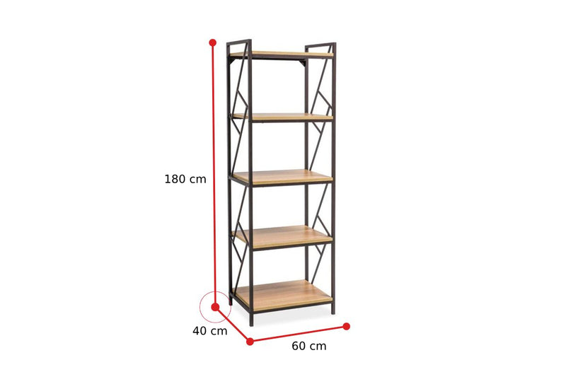 Regál LABOT R5. Je vyrobený z kvalitného materiálu v kombinácii s kovom. Regál tvorí celkom 5 otvorené police, ktoré sú spojené kovovou konštrukciou s výstužou v zadnej časti regálu. Regál v industriálnom štýle nájde svoje miesto v kuchyni i predsieni.