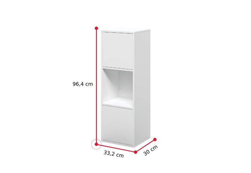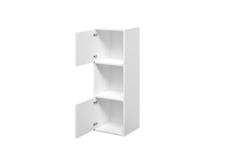 Regál MIKA 2.Je vyrobený z kvalitného materiálu. Pevná konštrukcia zaistí stabilitu a odolnosť proti poškodeniu. Regál poskytuje dostatok úložného priestoru v podobe jednej otvorenej a dvoch uzatvárateľných políc. Jednoduchý a moderný dizajn regálu umožňuje jednoduché kombinovanie s ďalšími produktmi z rovnakého radu, vďaka čomu vytvoríte harmonický a funkčný interiér.