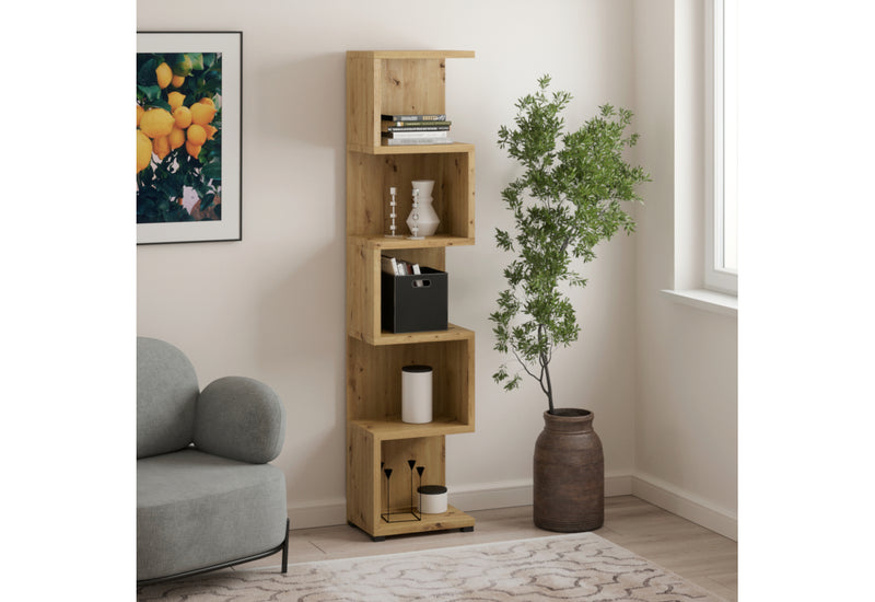 Regál TOREN. Praktický a priestranný vysoký regál v modernom vzhľade. Je vyrobený z kvalitného materiálu o sile 2,8 cm, proti poškodeniu ho chráni hrana ABS. Regál tvorí celkom päť radov otvorených políc, s dostatočným odkladacím priestorom. Regál môžete umiestniť do priestoru aj do rohu miestnosti. Možnosť výberu z viacerých dekorov.
