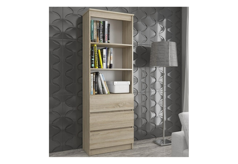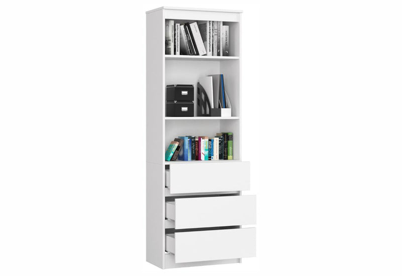 Regál TROGIR 2P3SZ. Je vyrobený z prvotriedneho materiálu s ABS hranami. Disponuje dvoma priestrannými poličkami a v spodnej časti regálu sa nachádzajú tri zásuvky. Regál je dostupný vo viacerých farebných prevedeniach a to vrátane lesklých. V lesklom prevedení je vždy predná strana zásuvky. Ostatné časti sú v mate.