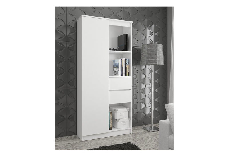 Regál TROGIR R15. Je vyrobený z prvotriedneho materiálu s ABS hranami. Disponuje celkom piatimi policami. Tri z nich chránia dvierka na ľavej strane. Na pravej strane sú tri otvorené police a dve zásuvky. Regál je dostupný v klasickej bielej matnej variante.
