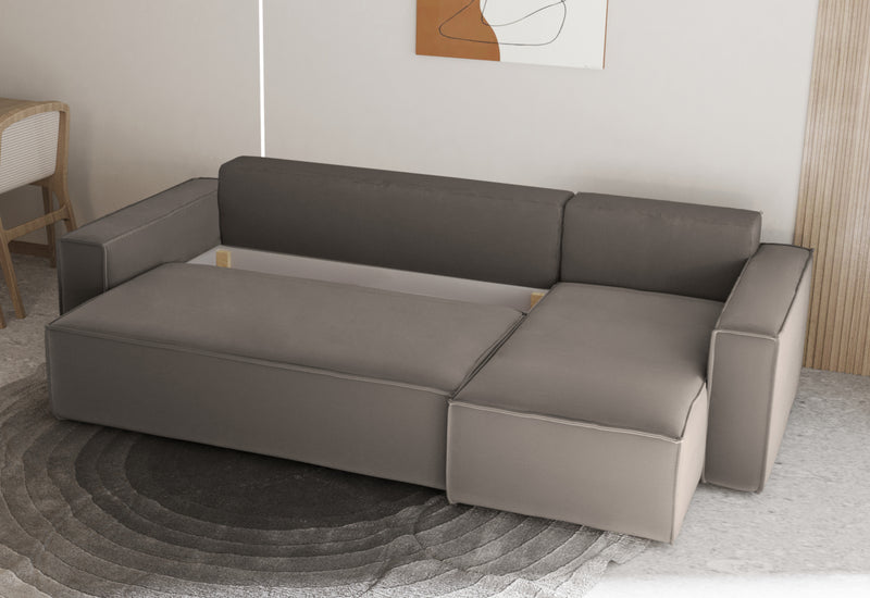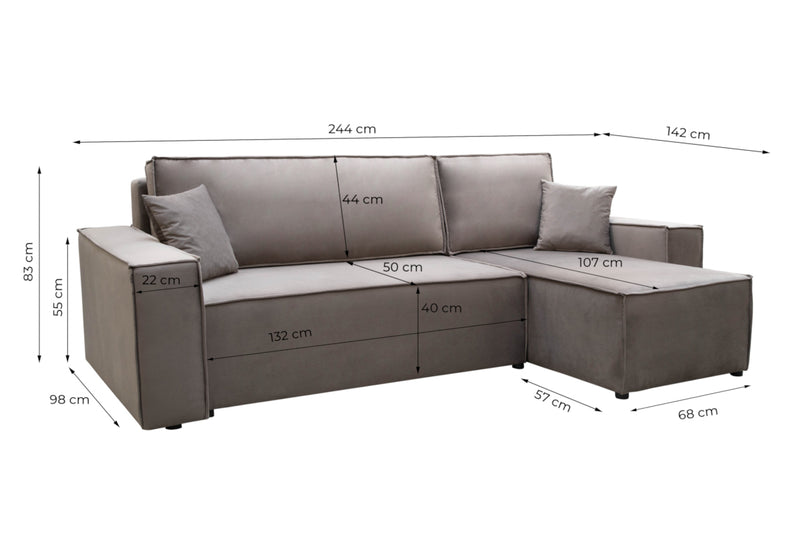 Rohová rozkladacia sedačka ALEX. Zaujme jednoduchými líniami moderného štýlu. Pevnosť a stabilitu zaistí kvalitne vyrobená konštrukcia. Potiahnutá je látkou, ktorá je príjemná na dotyk. Vyplnená je PUR penou T30, ktorá ponúka pohodlie pri odpočinku a relaxácii. Disponuje úložným priestorom a vďaka rozkladaciemu mechanizmu ľahko premeníte sedačku na lôžko. Celú čalúnenú sedačku je možné umiestniť aj do priestoru. Vďaka svojmu vzhľadu sa hodí do každého interiéru. Možnosť výberu z viacerých čalúnení.