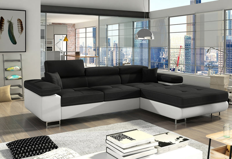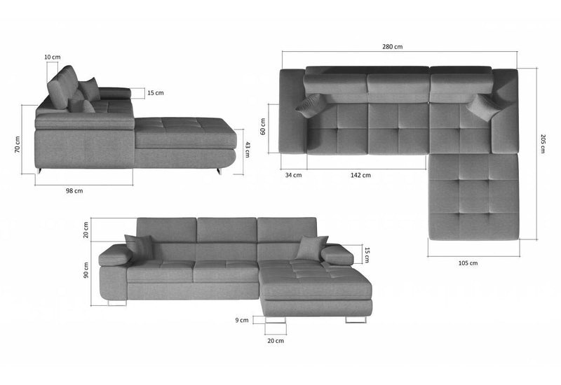 Rohová rozkladací sedačka AMARO. Priestranná sedačka sa stane nepostrádateľnou súčasťou obývačky. Neviete kam uložiť nečakaných hostí? Jedným krokom sedačku ľahko rozložíte na lôžko a razom máte spaciu plochu navyše. Ďalšou výhodou je určite úložný priestor, ktorý sa hodí pre deky, či vankúše. Pohodlný sedák zaistí výplň z vlnitých pružín spolu s penou T3030, operadlo tvorí pena T2542. Celkový vzhľad doplnia dekoratívne vankúšiky, ktoré dostanete k sedačke zdarma.