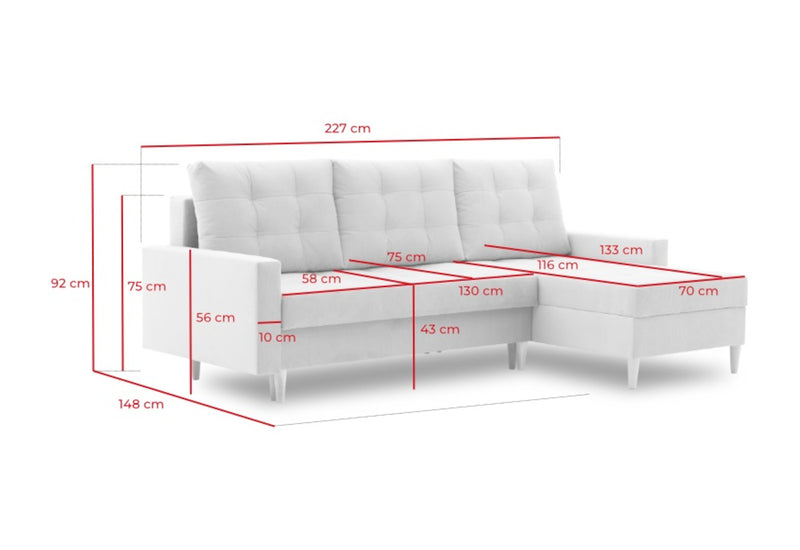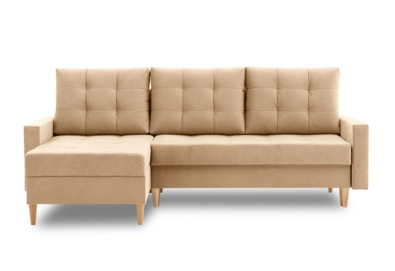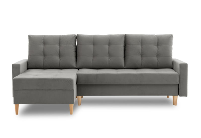 Rohová rozkladacia sedačka AVALON. Elegantná sedačka s rovnými líniami v škandinávskom dizajne. Vyrobená je z kvalitných materiálov. Potiahnutá je kvalitnou látkou. Súčasťou sedačky je úložný priestor a rozkladací mechanizmus vďaka ktorému ľahko premeníte na lôžko. Celú konštrukciu podopierajú nižšie drevené nožičky. Možnosť výberu z viacerých čalúnení a orientácie rohu.