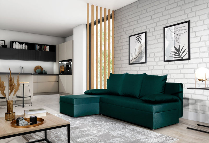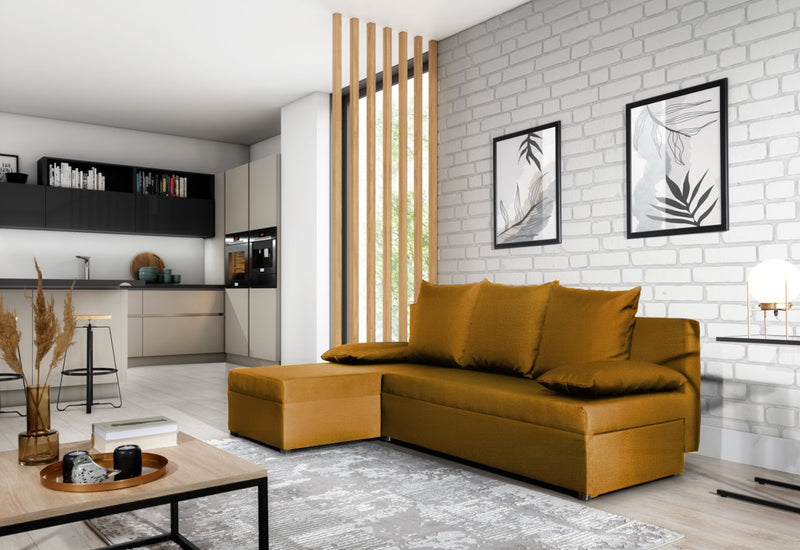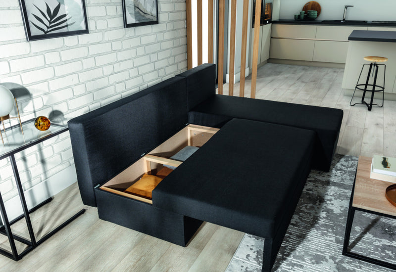 Rohová rozkládacia sedačka GEORGE. Hodí sa aj do menších obývacích izieb. Sedák a opierka sú vyplnené PUR penou, ktorá poskytne mäkký posed. Medzi jej výhody patrí možnosť rozloženia na lôžko. Ponúka tiež úložný priestor na posteľnú bielizeň. Orientácia rohu sedačky je univerzálna, preto si ju určíte až pri montáži doma. Doprajte si pohodlie pre posedenie s priateľmi, či rodinou.