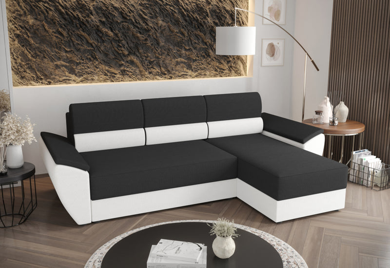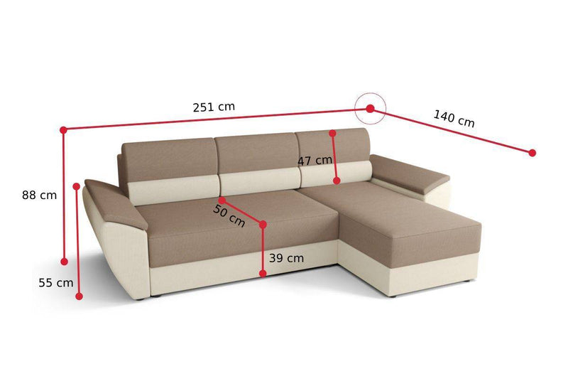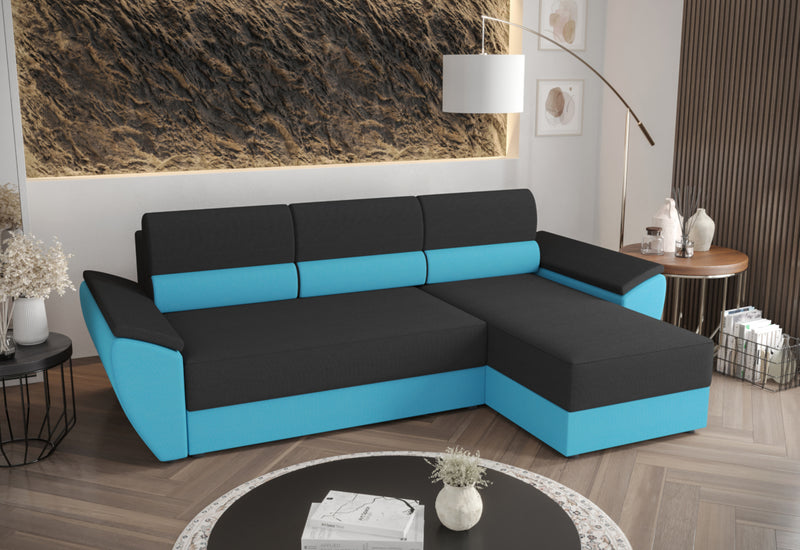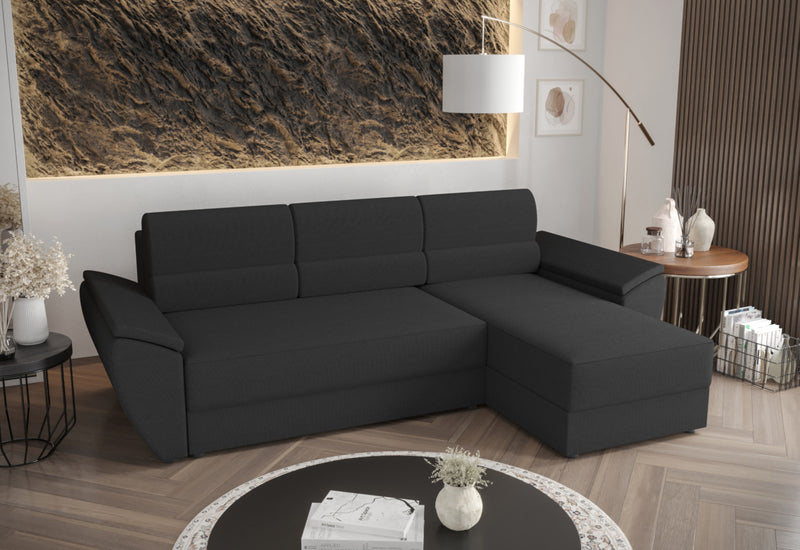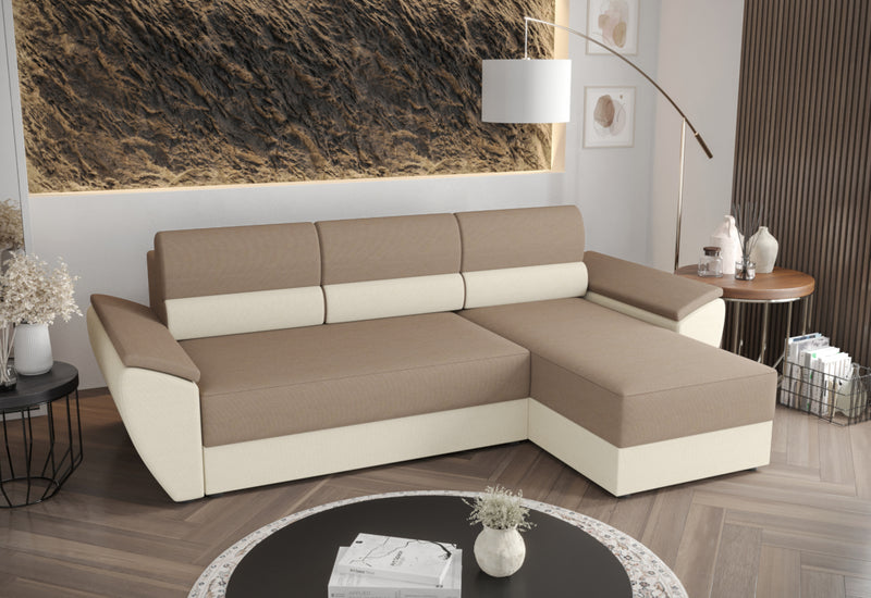 Rohová rozkladacia sedačka MIA. Sedacia súprava vás na prvý pohľad zaujme svojim jednoduchým dizajnom. Je vyrobená z kvalitných materiálov. Súčasťou sedačky je úložný priestor a rozkladací mechanizmus, vďaka ktorému ľahko premeníte sedačku na lôžko na príležitostné prespanie. Komfortné sedenie zaistí pohodlný sedák vyplnený PUR penou T-30 a príjemná látka. Celú konštrukciu podopierajú nízke nožičky. Možnosť výberu z viacerých čalúnení. Univerzálna orientácia rohu. Možno kombinovať s ďalšími produktmi z radu MIA.