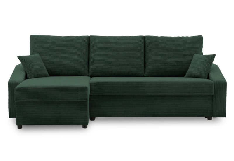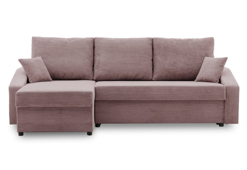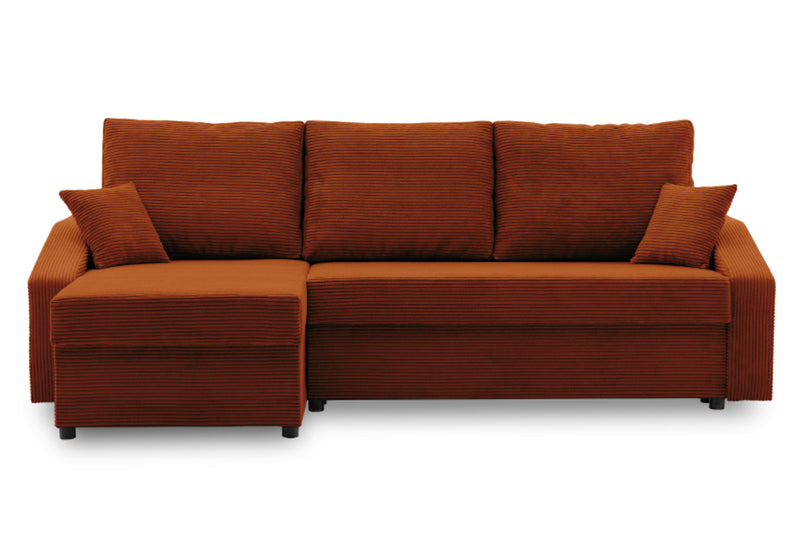 Rohová rozkladacia sedačka PARMA. Sedacia súprava vás na prvý pohľad zaujme svojim jednoduchým dizajnom. Je vyrobená z kvalitných materiálov. Súčasťou sedačky je úložný priestor a rozkladací mechanizmus, vďaka ktorému ľahko premeníte sedačku na lôžko na príležitostné prespanie. Komfortné sedenie zaistí pohodlný sedák vyplnený PUR penou T-35 a príjemná menčestrová látka, ktorou je sedačka potiahnutá. Celú konštrukciu podopierajú nízke nožičky. Orientácia rohu je univerzálna a to znamená, že si ju zvolíte až pri zostavovaní v pohodlí domova. Vybrať si môžete z viacerých čalúnení.