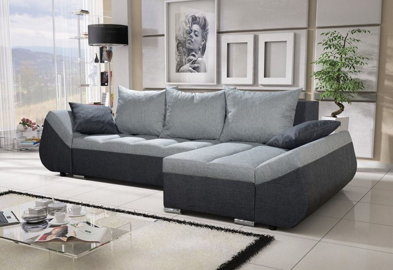 Rohová sedacia súprava CARO. Má otvárací mechanizmus, takže sa dá kedykoľvek premeniť na priestrannú posteľ. Ďalšou obrovskou výhodou je úložný priestor. Konštrukciu tvorí pevný 36mm rám kombinovaný s kvalitným 18mm laminátom. Na výplň boli použité pružiny Falliste a T30 PUR pena, čo zaisťuje dlhodobé používanie. Sedačka obsahuje tri pohodlné vankúše, ktoré fungujú ako opierka.