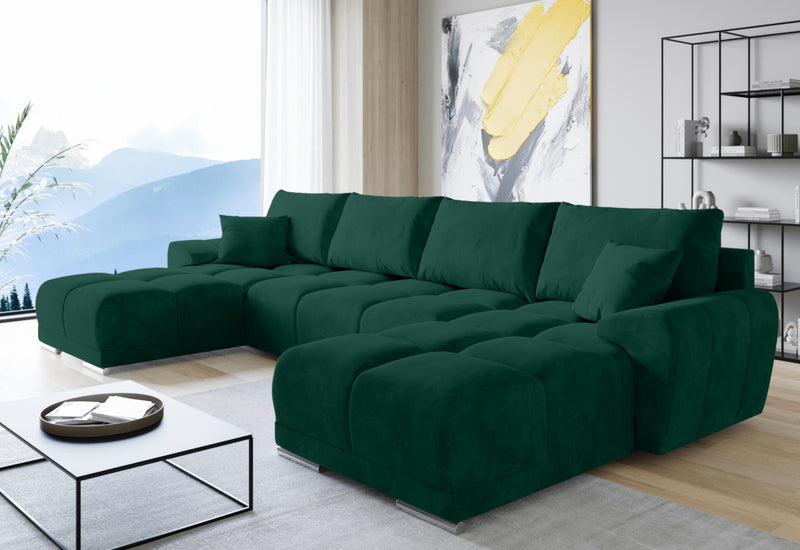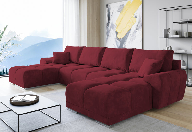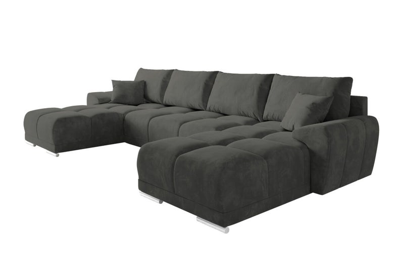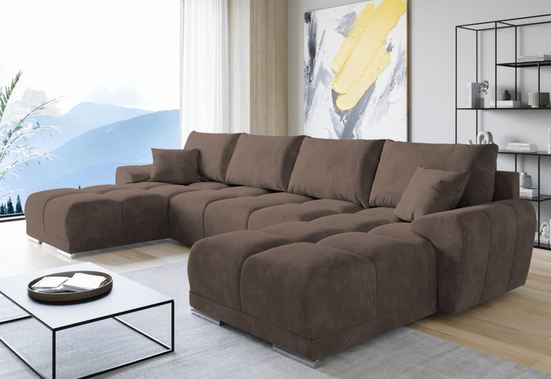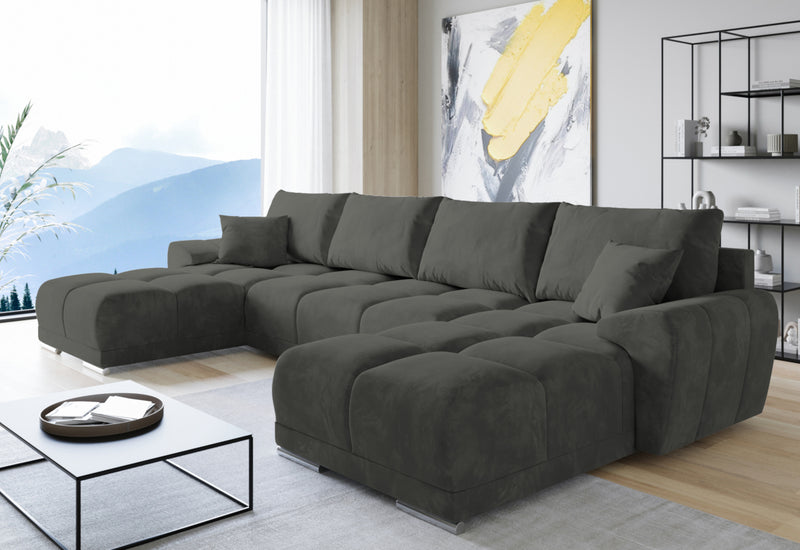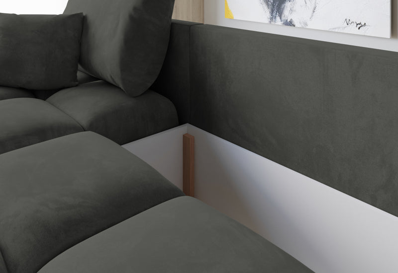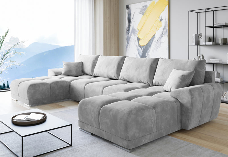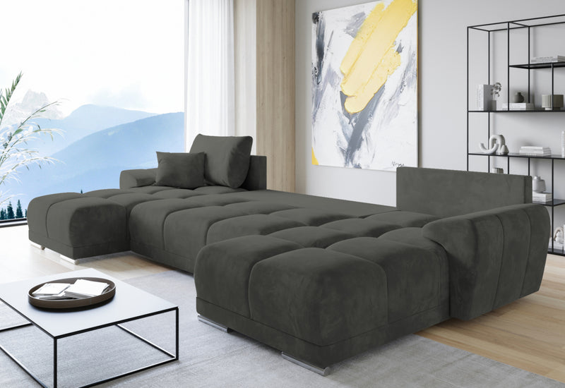 Rohová rozkladacia sedačka do U BEGIMIR. Sedačka Vás na prvý pohľad zaujme svojim moderným dizajnom. Pevnosť a stabilitu zaručí dobre spracovaná konštrukcia. Sedacia plocha je vyplnená penou PUR penou a potiahnutá kvalitnou látkou. Vďaka úložnému priestoru získate dostatok miesta na lôžkoviny. Sedačku ľahko premeníte na lôžko pre príležitostné prespanie. Možnosť voľby čalúnenia. Možnosť voľby sedačky s taburetom.