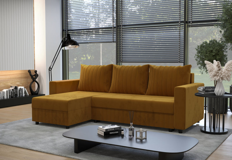 Rohová sedacia súprava MARK. Zaujme moderným a jednoduchým vzhľadom. Komfort pri odpočinku zaistí kvalitná PUR pena s tvrdosťou T30 a veľké vankúše. Vďaka rozkladaciemu mechanizmu ľahko premeníte sedačku na lôžko. Súčasťou sedačky je úložný priestor. Vybrať si môžete z viacerých farebných kombinácií.