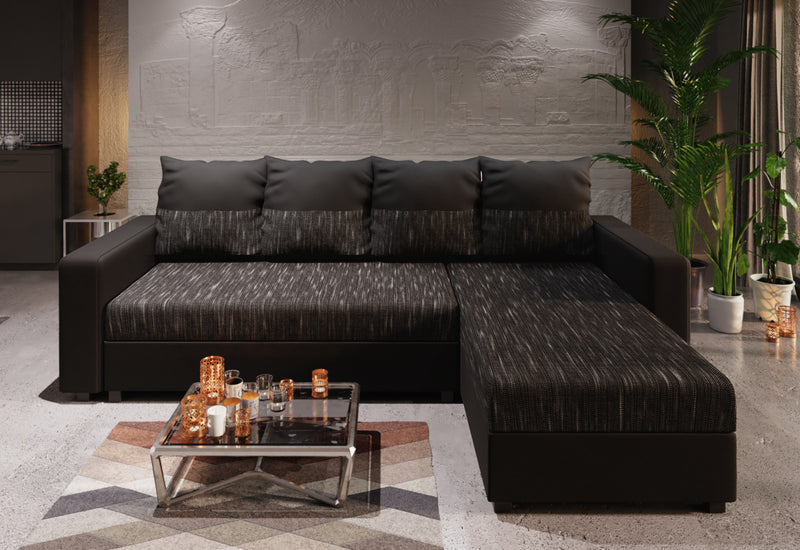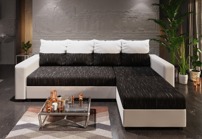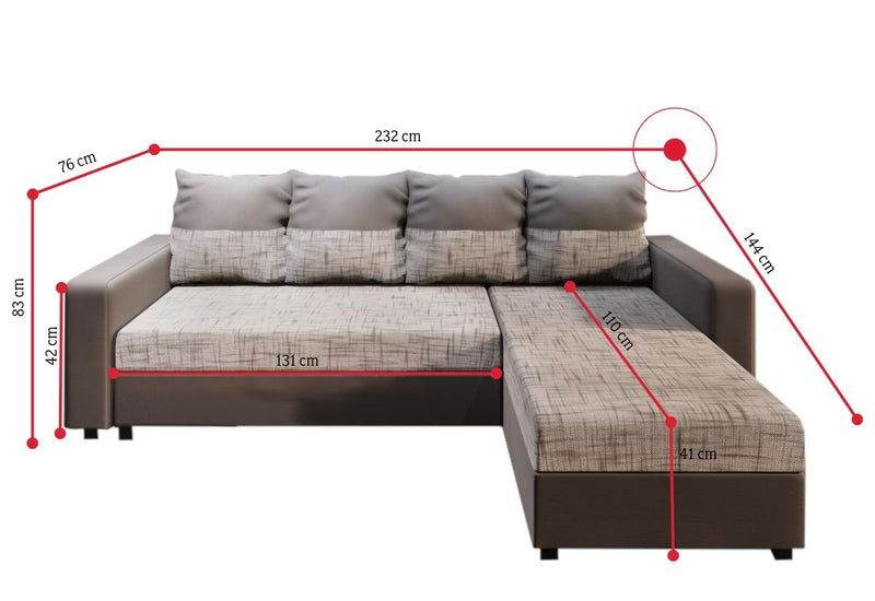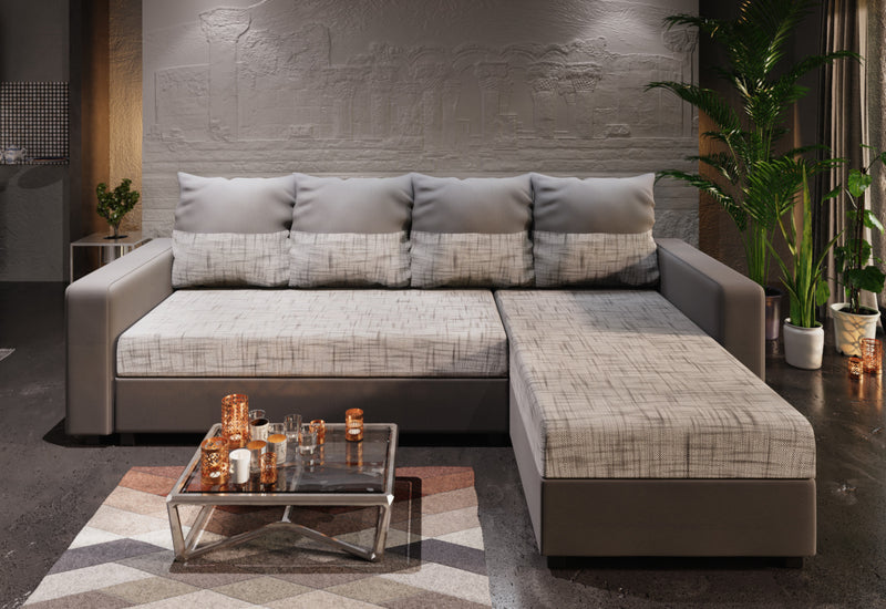 Rohová sedacia súprava STANA. Zaujme moderným a jednoduchým vzhľadom. Komfort pri odpočinku zaistí kvalitná PUR pena s tvrdosťou T30 a dvojfarebné veľké vankúše. Vďaka rozkladaciemu mechanizmu ľahko premeníte sedačku na lôžko. Vankúše sú obojstranné. Súčasťou sedačky je úložný priestor. Vybrať si môžete z viacerých farebných kombinácií.