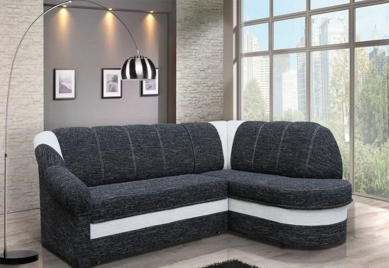 Rohová sedačka PETER. Je vyplnená PUR penou a bonellovými pružinami. Vďaka rozkladaciemu mechanizmu ju ľahko premeníte na lôžko. Ďalšou veľkou výhodou je úložný priestor, ktorým sedačka disponuje. Vybrať si môžete nielen farebnú kombináciu, ale aj orientáciu rohu.