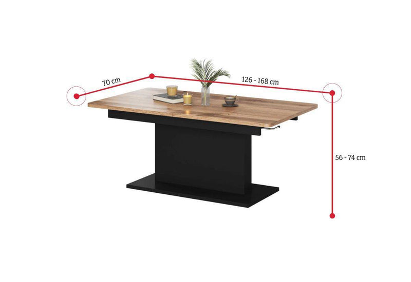 Rozkladací jedálenský stôl BOGATO. Jeho moderný štýl a jednoduchý dizajn si obľúbite na prvý pohľad. Rozkladací jedálenský stôl je vyrobený z dyhovej dosky. Jednoducho ho rozložíte na šírku 168 cm pomocou prídavnej dosky. Možnosť výberu dekoru.