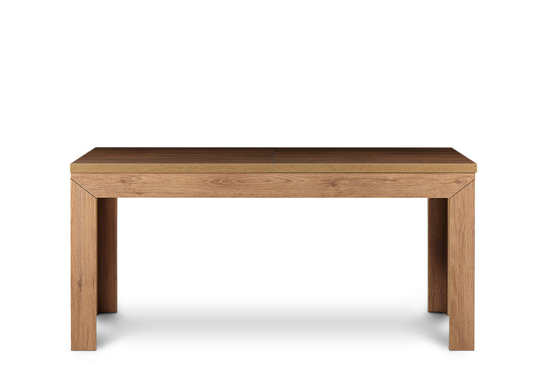 Rozkladací jedálenský stôl HONDA. Jednoduché línie v modernom dizajne. Základ tvoria nohy z lamina s hrúbkou 1,8 cm. Tie zaistia požadovanú stabilitu a pevnosť. Doska z kvalitného lamina s hrúbkou 1,6 cm v dekore prírodného duba ponúka priestrannú jedálenskú plochu. Máé ABS hranu, ktorá chráni dosku pred mechanickým poškodením a vlhkosťou. Vďaka klasickému spracovaniu ho využijete v každej kuchyni či v jedálni.