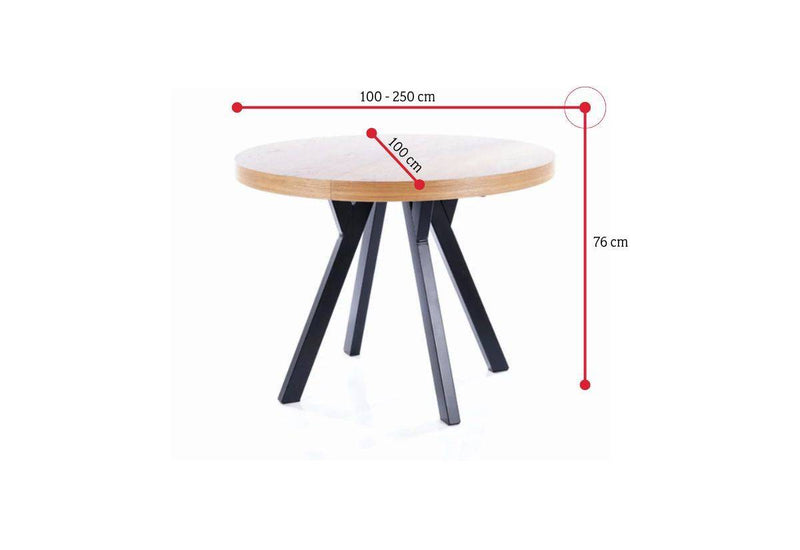 Rozkladací jedálenský stôl LUCIANO, 100-250x76x100, dub/čierna -  - 0
