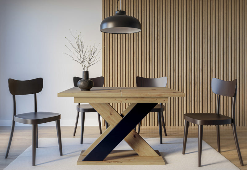 Rozkladací jedálenský stôl MAO. Svojím atypickým vzhľadom zaujme každého. Vyrobený je z kvalitného lamina, ktoré je opatrené ABS hranami. Tie chránia materiál pred mechanickým poškodením a vlhkosťou. Vrchná jedálenská doska je posadená na moderne riešenom podstavci. Stôl je možné rozložiť na šírku 160 cm. Vybrať si môžete z viacerých uvedených dekorov.