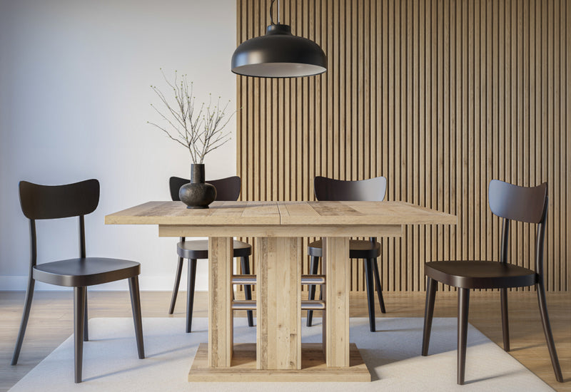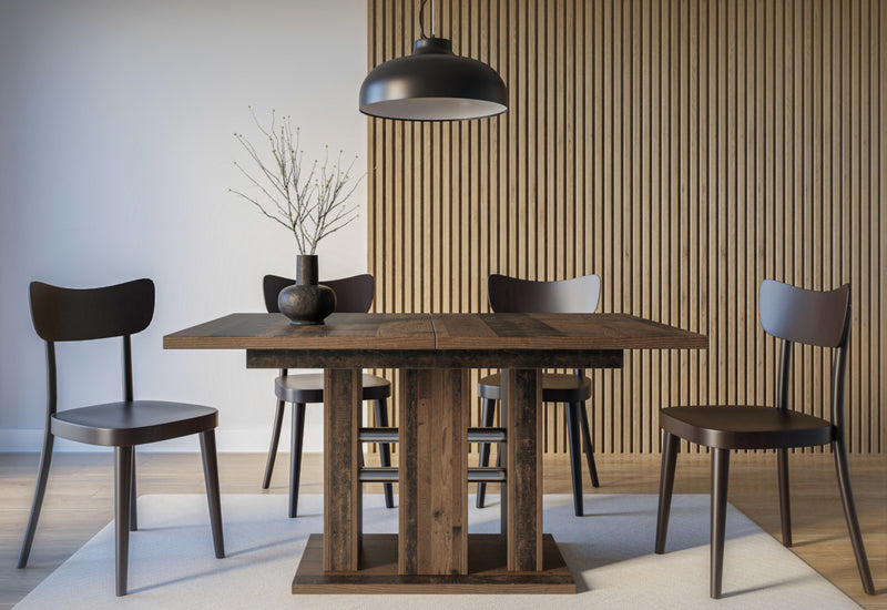 Rozkladací jedálenský stôl MILOT. Svojim atypickým vzhľadom zaujme každého. Vyrobený je z kvalitného lamina s ABS hranami. Tie chránia materiál pred mechanickým poškodením a vlhkosťou. Vrchná jedálenská doska je posadená na moderne riešenom podstavci. Stôl je možné rozložiť na šírku 180 cm. Vybrať si môžete z viacerých dekorov.