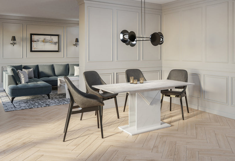 Rozkladací jedálenský stôl TRAFLE. Svojím atypickým vzhľadom zaujme každého. Vyrobený je z kvalitného lamina, ktoré je opatrené ABS hranami. Tie chránia materiál pred mechanickým poškodením a vlhkosťou. Vrchná jedálenská doska je posadená na moderne riešenom podstavci. Stôl je možné rozložiť na šírku 180 cm. Vybrať si môžete z viacerých uvedených dekorov.