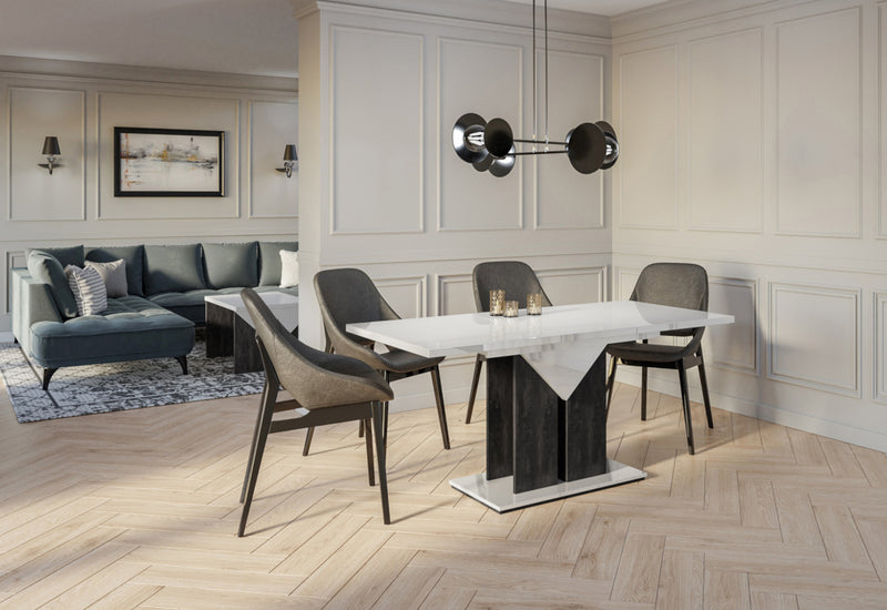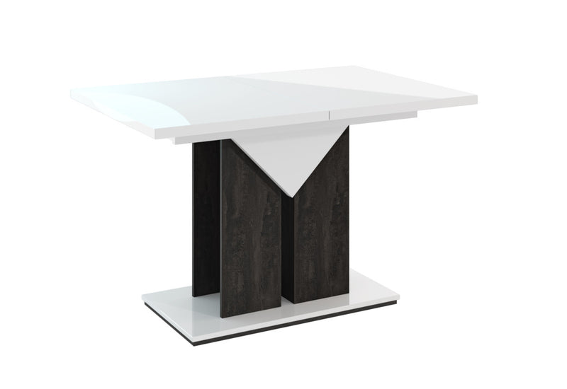 Rozkladací jedálenský stôl TROP. Svojím atypickým vzhľadom zaujme každého. Vyrobený je z kvalitného lamina, ktoré je opatrené ABS hranami. Tie chránia materiál pred mechanickým poškodením a vlhkosťou. Vrchná jedálenská doska je posadená na moderne riešenom podstavci. Stôl je možné rozložiť na šírku 160 cm. Vybrať si môžete z viacerých uvedených dekorov.