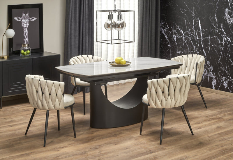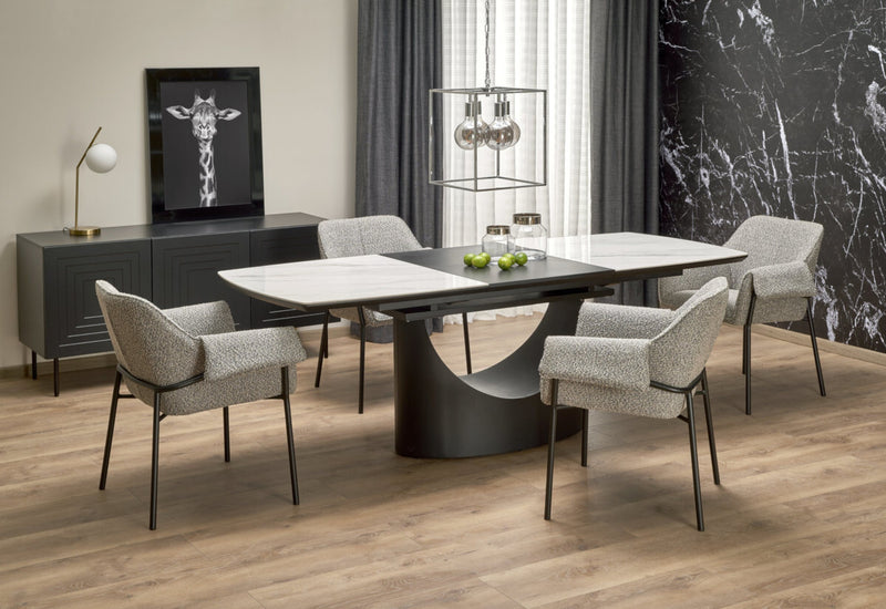 Rozkladací jedálenský stôl VIRUL (biely mramor/čierna)