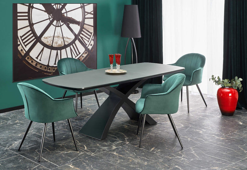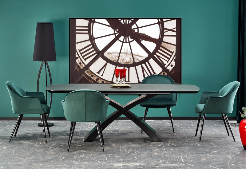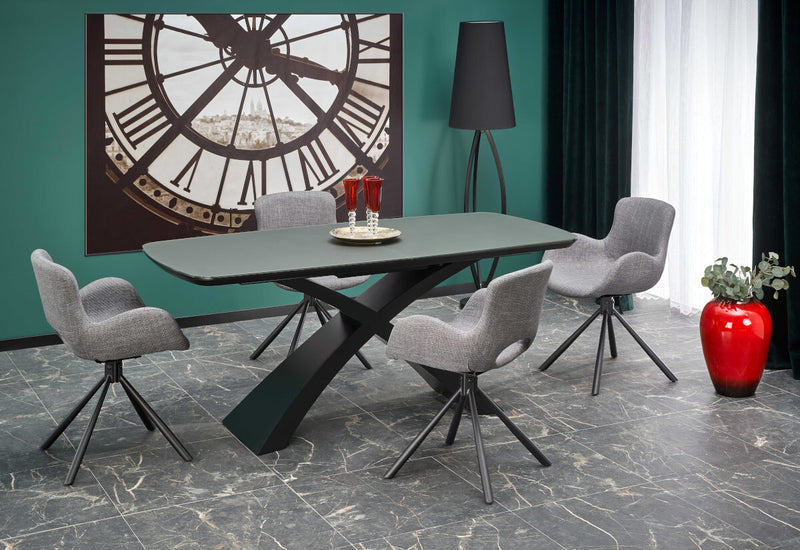 Rozkladací jedálenský stôl VISTO, 180-220x75x89, tmavý popol/čierna -  - 0