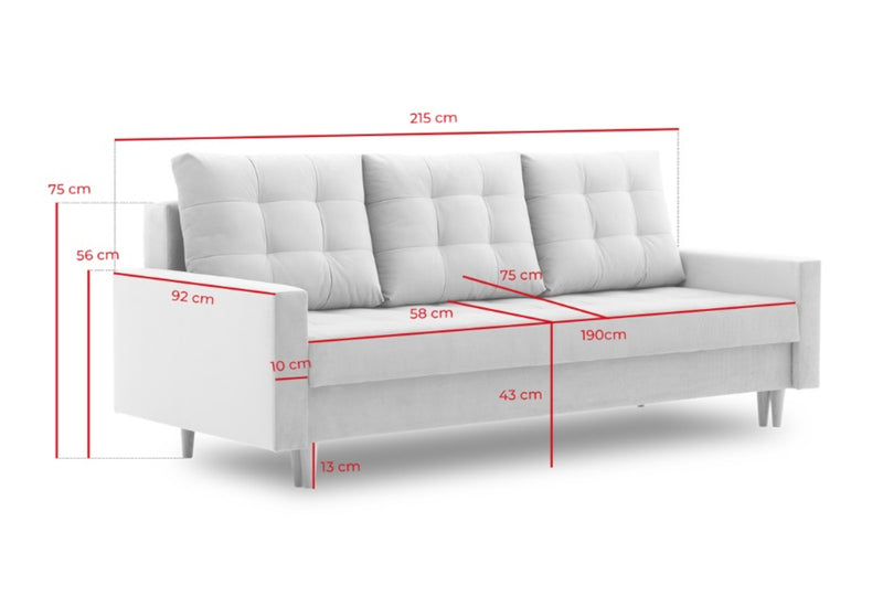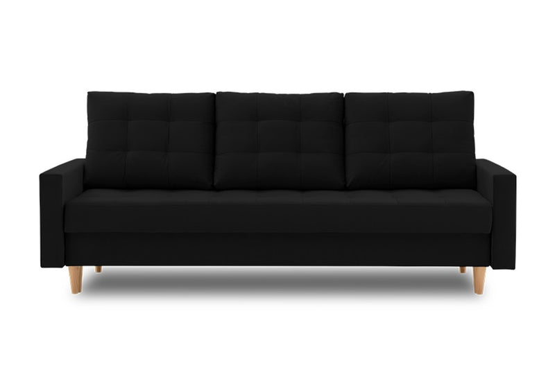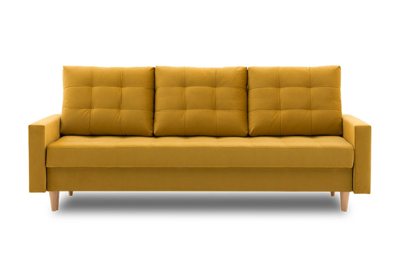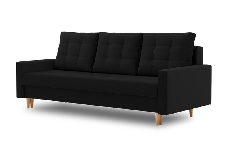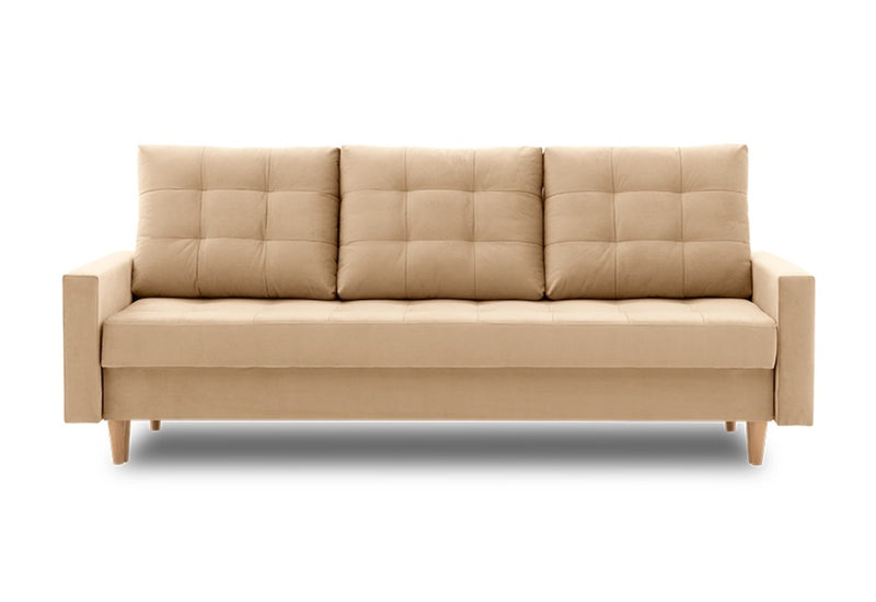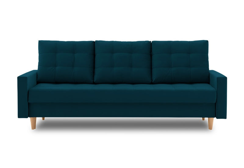 Rozkladacia pohovka AVALON. Elegantná pohovka s rovnými líniami v škandinávskom dizajne. Vyrobená je z kvalitných materiálov. Potiahnutá je kvalitnou látkou. Súčasťou pohovky je úložný priestor a rozkladací mechanizmus vďaka ktorému ľahko premeníte pohovku na lôžko. Celú konštrukciu podopierajú nižšie drevené nožičky. Možnosť výberu z viacerých čalúnení.