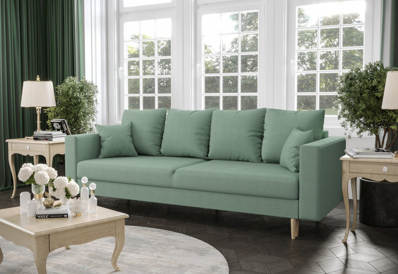Čalúnená pohovka NATALI. Jednoduché rovné línie. Pevnosť a stabilitu zaručuje kvalitná konštrukcia. Výplň sedadla je tvorená kombináciou PUR peny T30 s pružinami typu Faliste, ktoré zaistia pohodlie. Súčasťou je úložný priestor. K pohovke obdržíte veľké vankúše a malé vankúšiky. Stojí na vyšších nožičkách pre väčšiu stabilitu a vzdušnosť. Možnosť výberu z viacerých čalúnení.