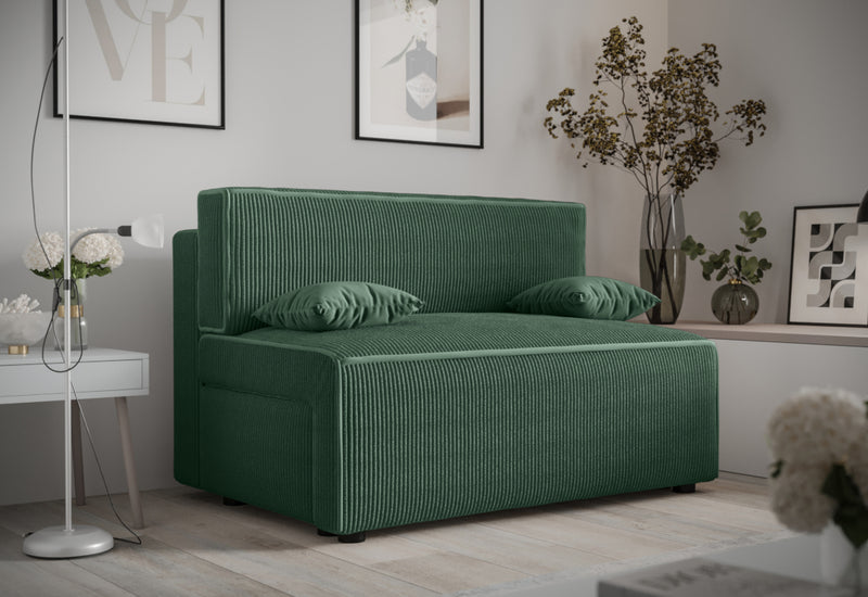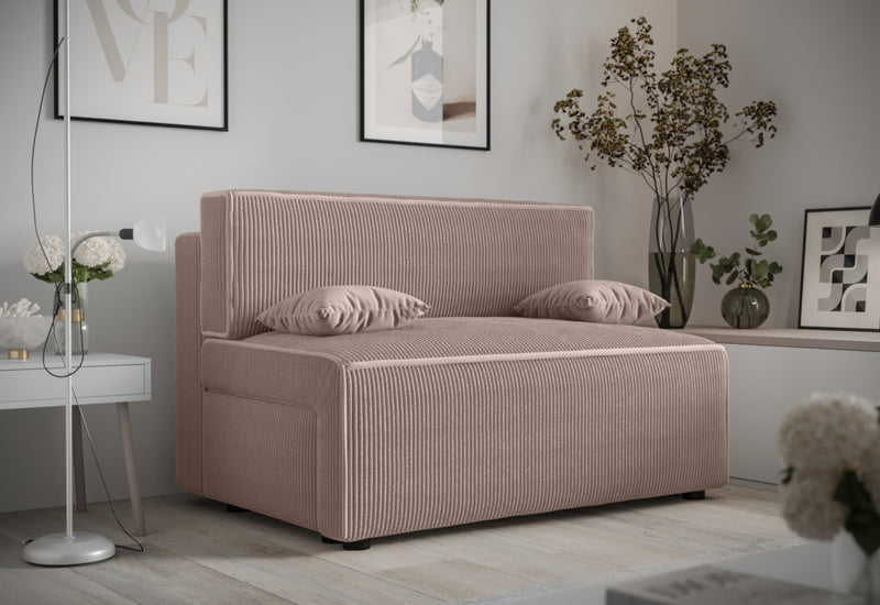 Rozkladacia pohovka RAMI. Zaujme moderným a jednoduchým vzhľadom. Pevnosť a stabilitu zaručuje kvalitná konštrukcia. Potiahnutá je netradičnou menčestrovou látkou. Výplň tvorí kombinácia bonellových pružín spolu s penou T30, ktoré zaistia pohodlie. Vďaka rozkladaciemu mechanizmu premeníte pohovku na lôžko. Súčasťou je úložný priestor. Stojí na nižších nožičkách pre väčšiu stabilitu. Možnosť výberu z viacerých čalúnení.