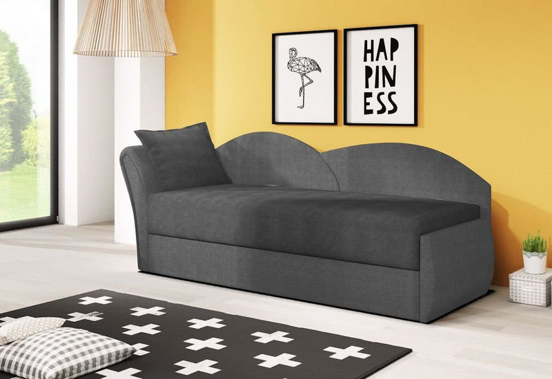 Rozkladacia pohovka RICCARDO. Zaujme svojim zaujímavým dizajnom. Čalúnenie má semišový charakter, ktorý je príjemný na dotyk a ľahko sa čistí. Pohovku jednoducho rozložíte na lôžko, určite oceníte tiež úložný priestor. Výplň sedacej plochy je z PUR peny. Vyberať si môžete z niekoľkých kombinácií čalúnenia. K pohovke dostanete ešte malý dekoračný vankúšik.