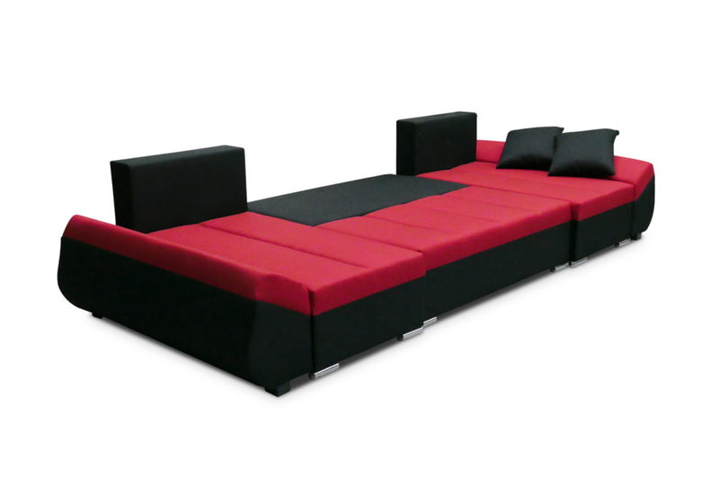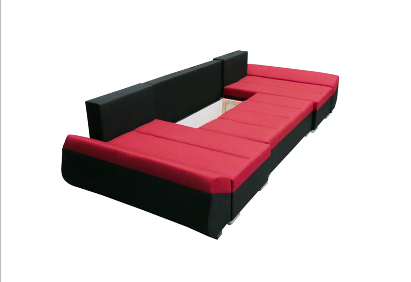 Rozkladacia sedacia súprava CARO U. Vyzerá elegantne a poskytuje dostatok priestoru. Pohovku ľahko rozložíte na lôžko, ďalšou výhodou je úložný priestor. Súčasťou sú aj vankúšiky. Výplň sedačky poskytuje pohodlie pri sedení a spaní. Stojí na nízkych nožičkách, zaujímavo tiež vyzerajú opierky, ktoré podčiarkujú jej celkový vzhľad.